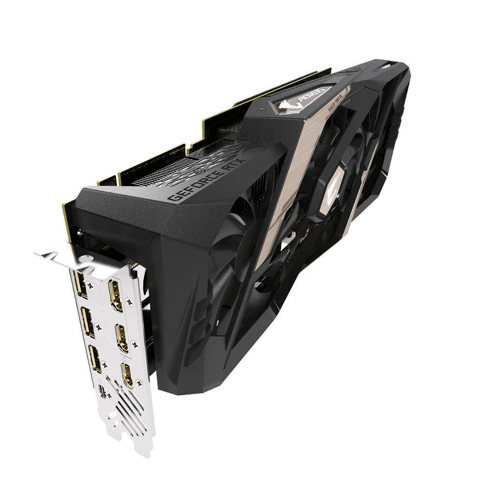 Gigabyte GV-N208TAORUS-11GC. Família de processadores gráficos: NVIDIA, Processador gráfico: GeForce RTX 2080 Ti, Frequência do processador: 1695 MHz. Memória de placa gráfica discreta: 11 GB, Tipo de memória do adaptador gráfico: GDDR6, Memória bus: 352 bit, Velocidade do clock: 14000 MHz. Resolução Máxima: 7680 x 4320 pixels. Versão DirectX: 12.0, Versão OpenGL: 4.5. Bus PCI: PCI Express x16 3.0. Tipo de refrigeração: Activo, Número de ventoínhs: 3 ventoinha(s)